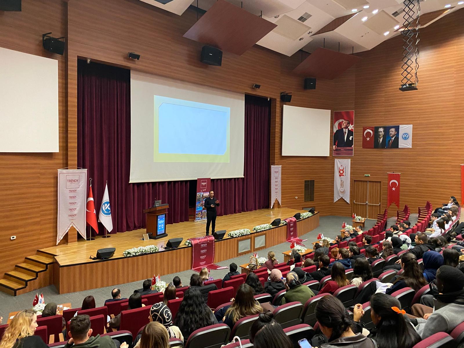 Üniversitemiz Kariyer Planlama Uygulama ve Araştırma Merkezi Müdürlüğü koordinasyonunda, Trendy Hotels iş birliğiyle öğrencilerin kariyer farkındalıklarını artırmaya yönelik önemli bir etkinlik gerçekleştirildi. 16 Aralık 2025 Salı günü saat 14.00’te, 15 Temmuz Yerleşkesi Kongre ve Kültür Merkezinde düzenlenen etkinlik, öğrencilerden yoğun ilgi gördü.