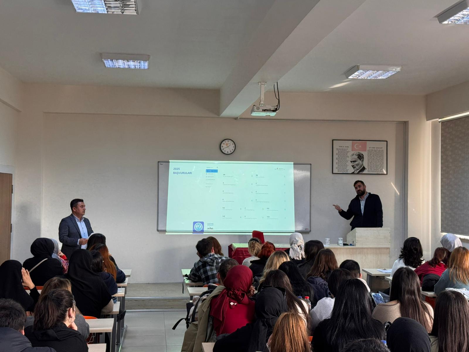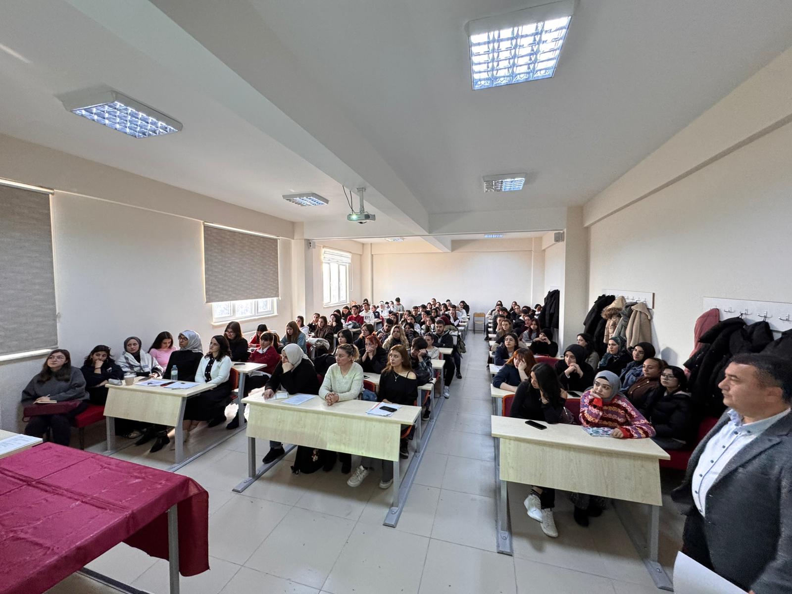 Merkez personeli Oğuz Duman’ın konuşmacı olarak katıldığı programın moderatörlüğünü Merkez Müdür Yardımcısı Öğr. Gör. Etem Hızaler üstlendi. Seminerde; ulusal ve zorunlu staj kavramları, staj başvuru süreçleri, gerekli belgeler ve uygulama aşamasında dikkat edilmesi gereken hususlar ayrıntılı şekilde ele alındı.