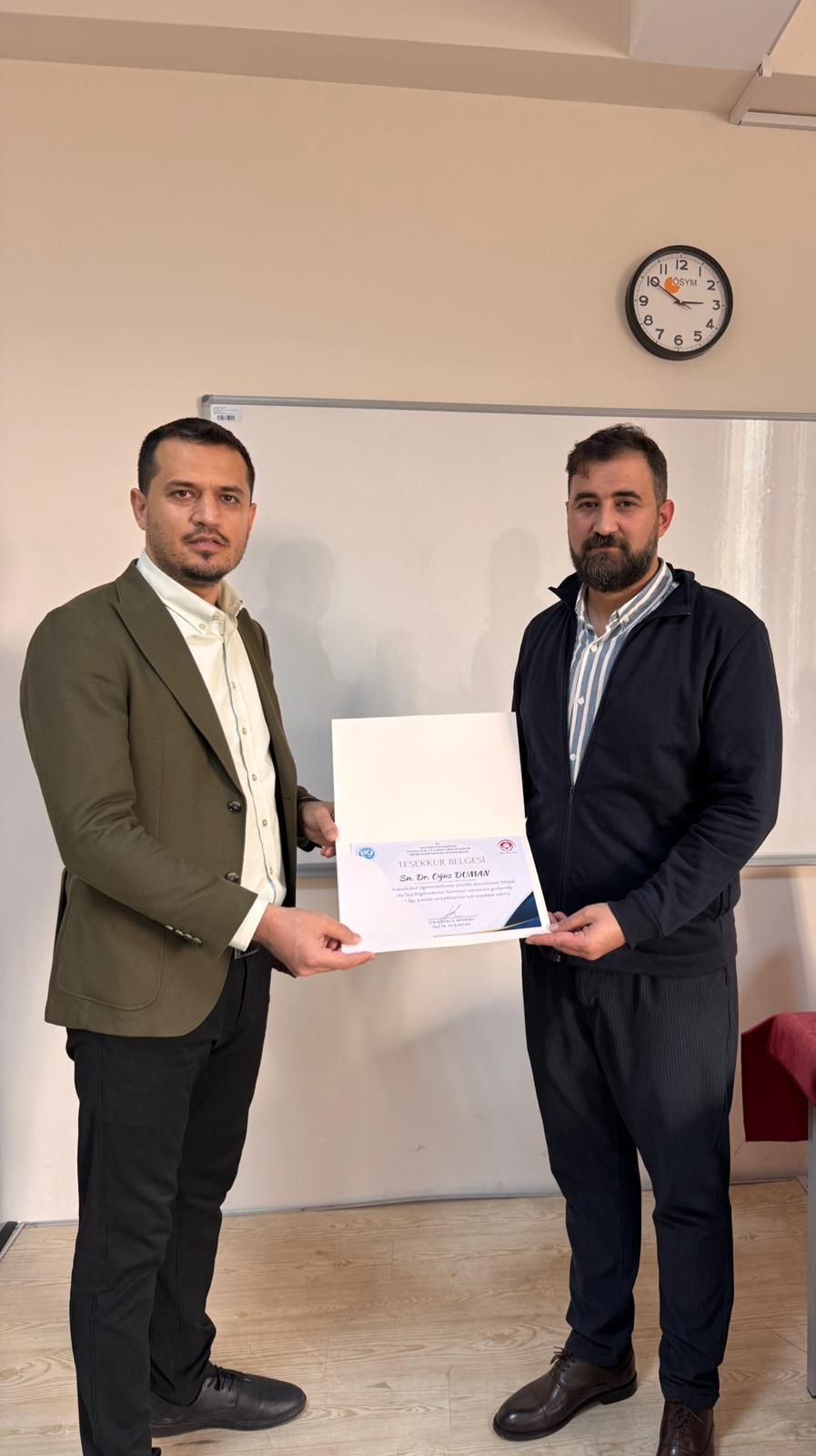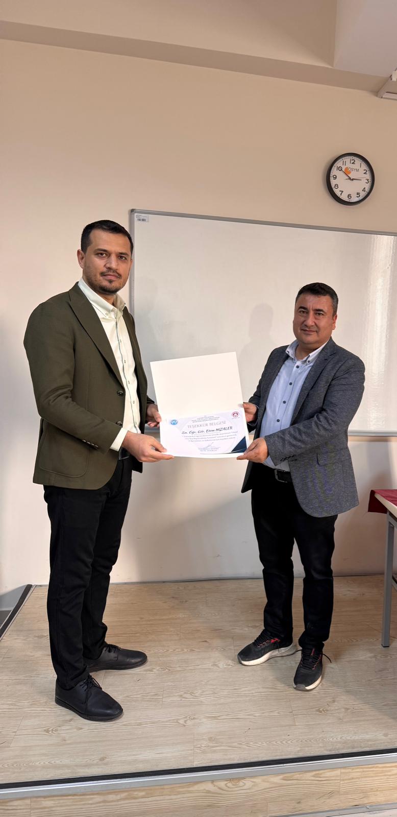Program sonunda seminere katkı sunan akademik ve idari personele teşekkür belgesi takdim edildi.
